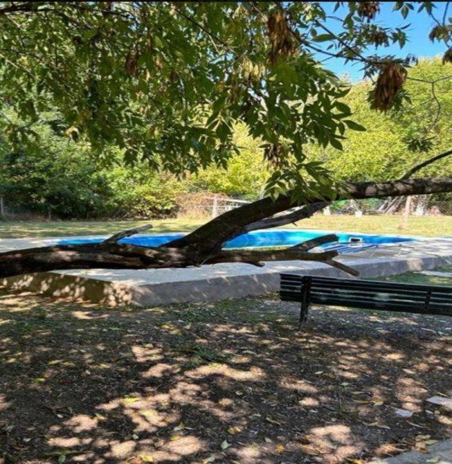 En el exterior se destaca un amplio parque arbolado, perfecto para reuniones familiares, y una piscina.