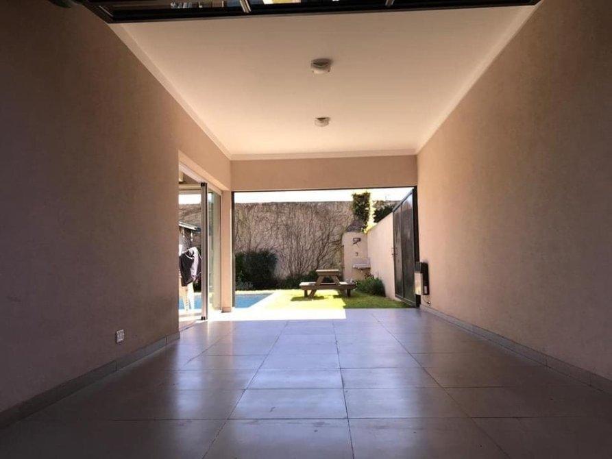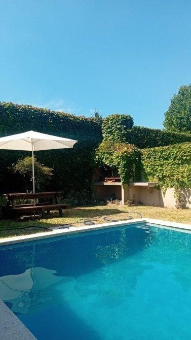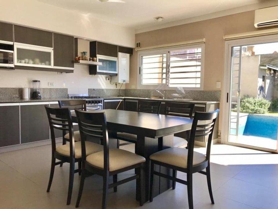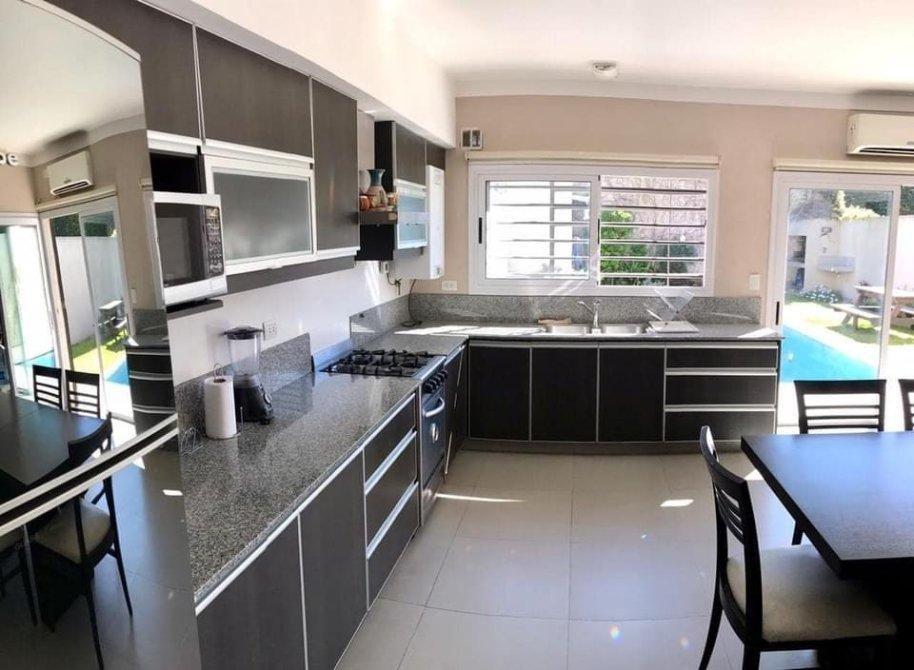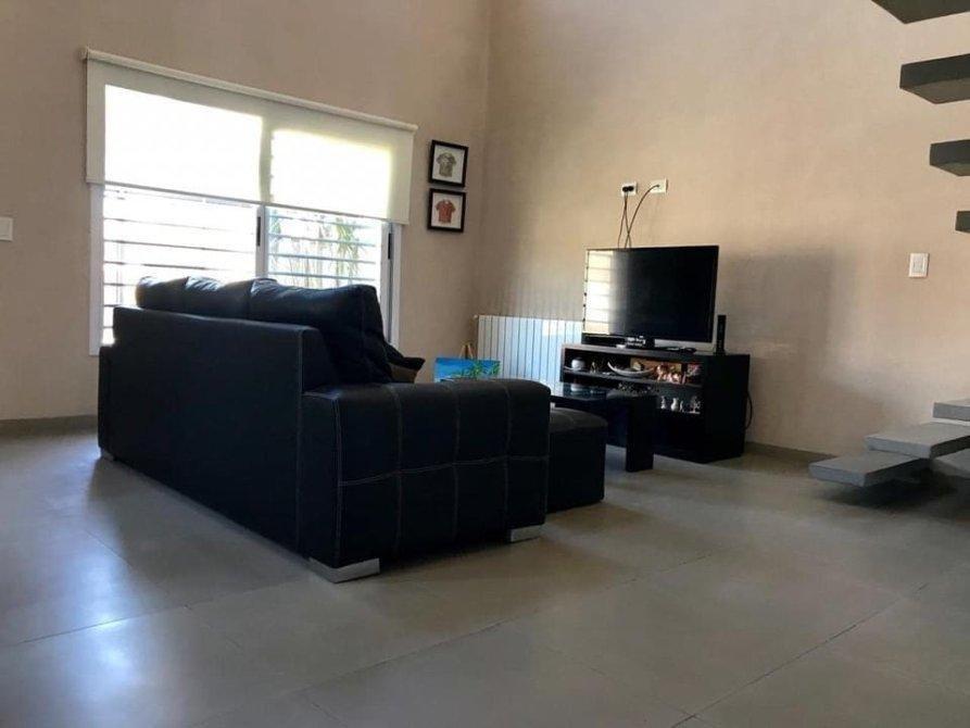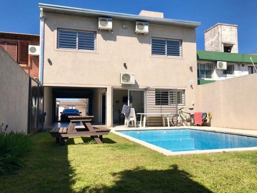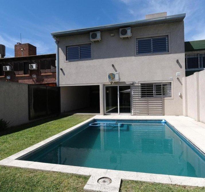 Casa distribuida en dos plantas. En planta baja contamos con un pequeño jardin al frente, ingresamos a un living comedor con pisos de porcelanato de primera linea, cortinas roller y escalera flotante de loza. Cocina comedor completamente equipada con muebles sobre y bajo mesada, cocina, aire acondicionado y caldera. Cuenta con un baño de recepcion en planta baja, garage pasante con doble porton levadizo, parque con pileta de material revestida con venecitas de 6x4 metros, pequeño deposito y parrilla de material.