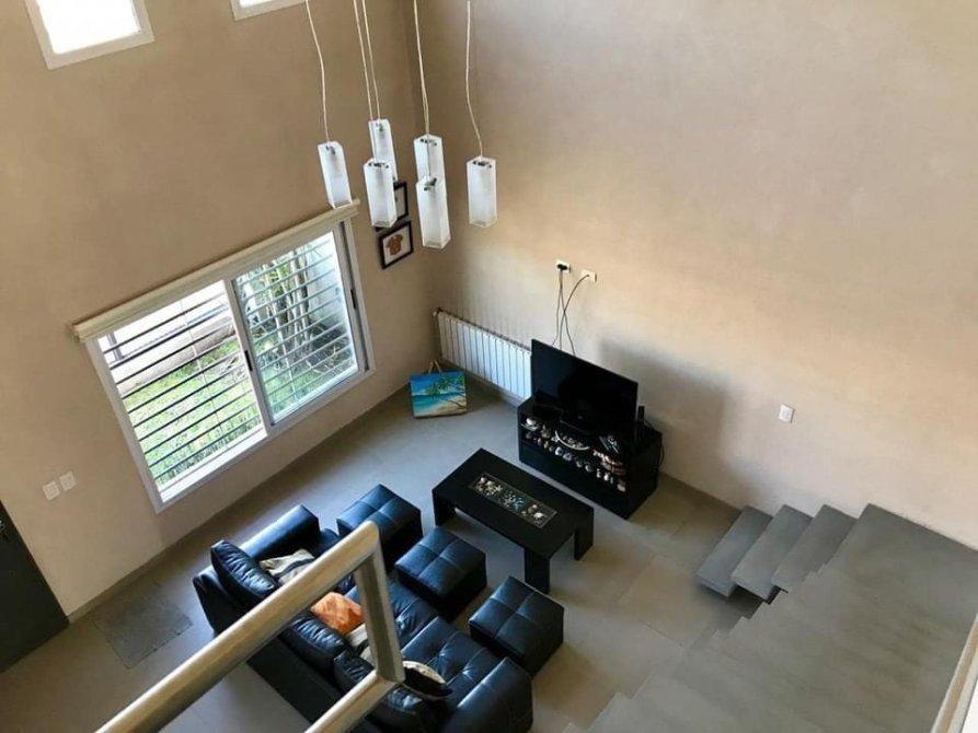 En planta alta encontramos 3 dormitorios, 1 con placar y dormitorio principal con vestidor. Hermoso antebaño y baño completo. La propiedad cuenta con un sistema de calefaccion por radiadores en todos sus ambientes, aires acondicionados marca Surrey, doble vidriado en todas las abertura, bomba elevadora, presurizadora y alarma.