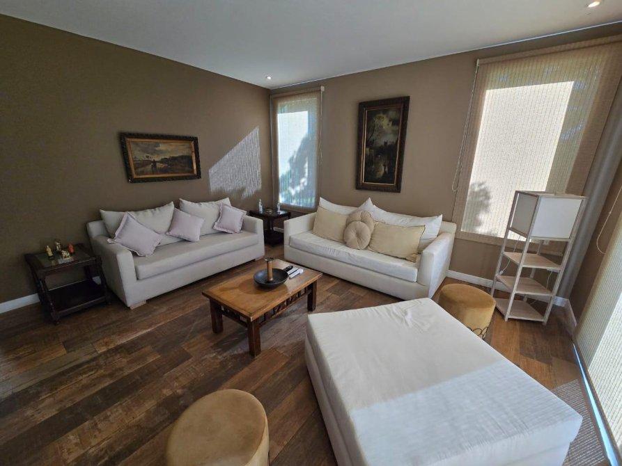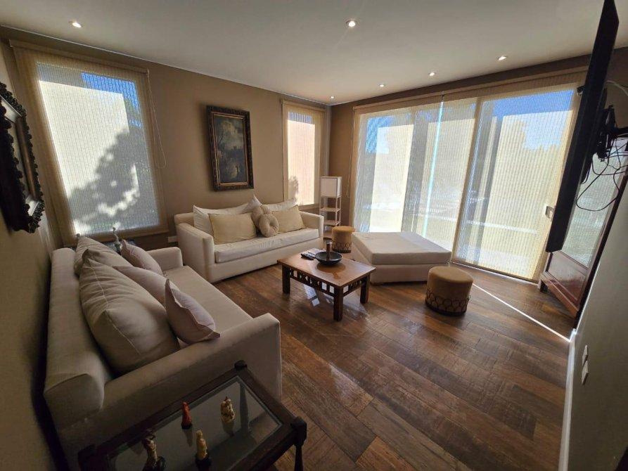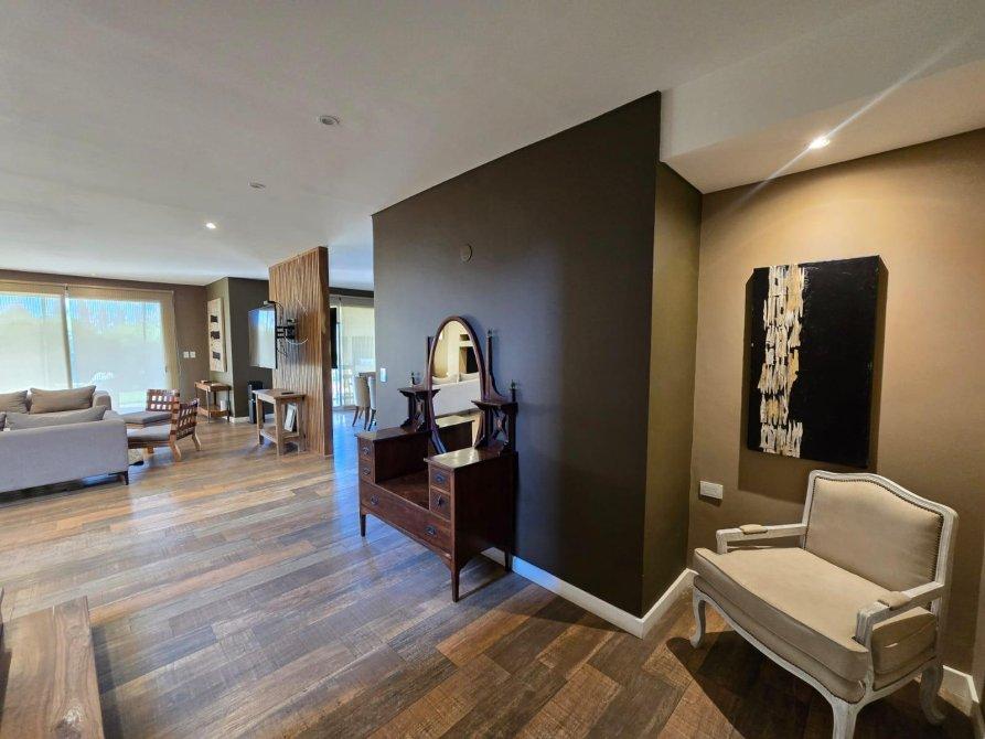 La propiedad cuenta con hall, amplio estar comedor, vinoteca, cocina con comedor diario, toilette de recepción, baño completo con bañera y ducha y sala de estar privada en la plata baja.