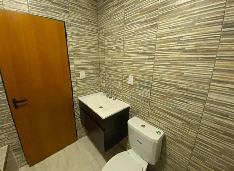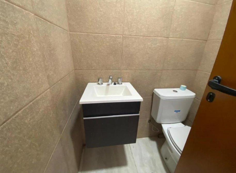 Amplio estar-comedor con pisos de porcelanato y split frío/calor