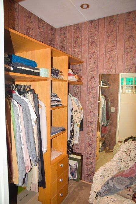 Dormitorio principal con pisos tarugados, vestidor y baño privado.