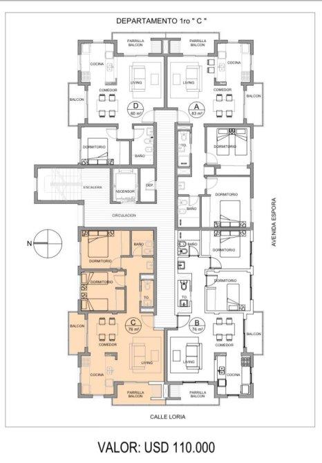 Ubicación privilegiada: 1er piso contrafrente, esquina Espora y Loria.