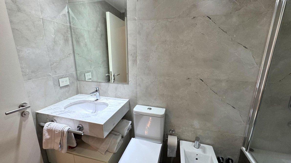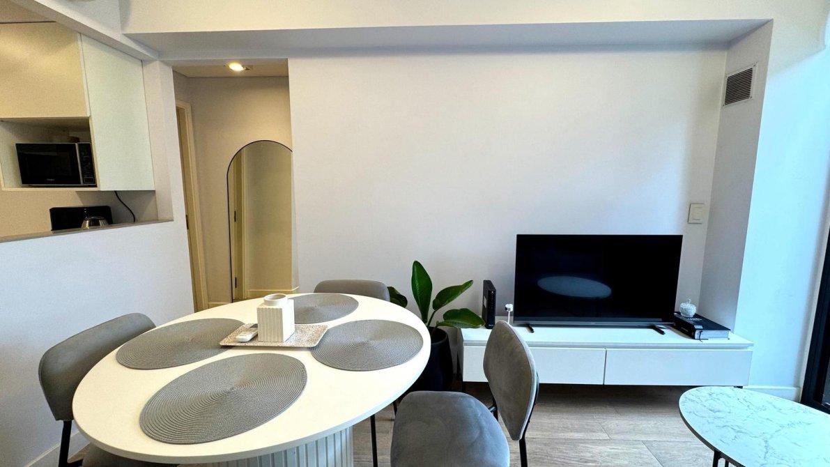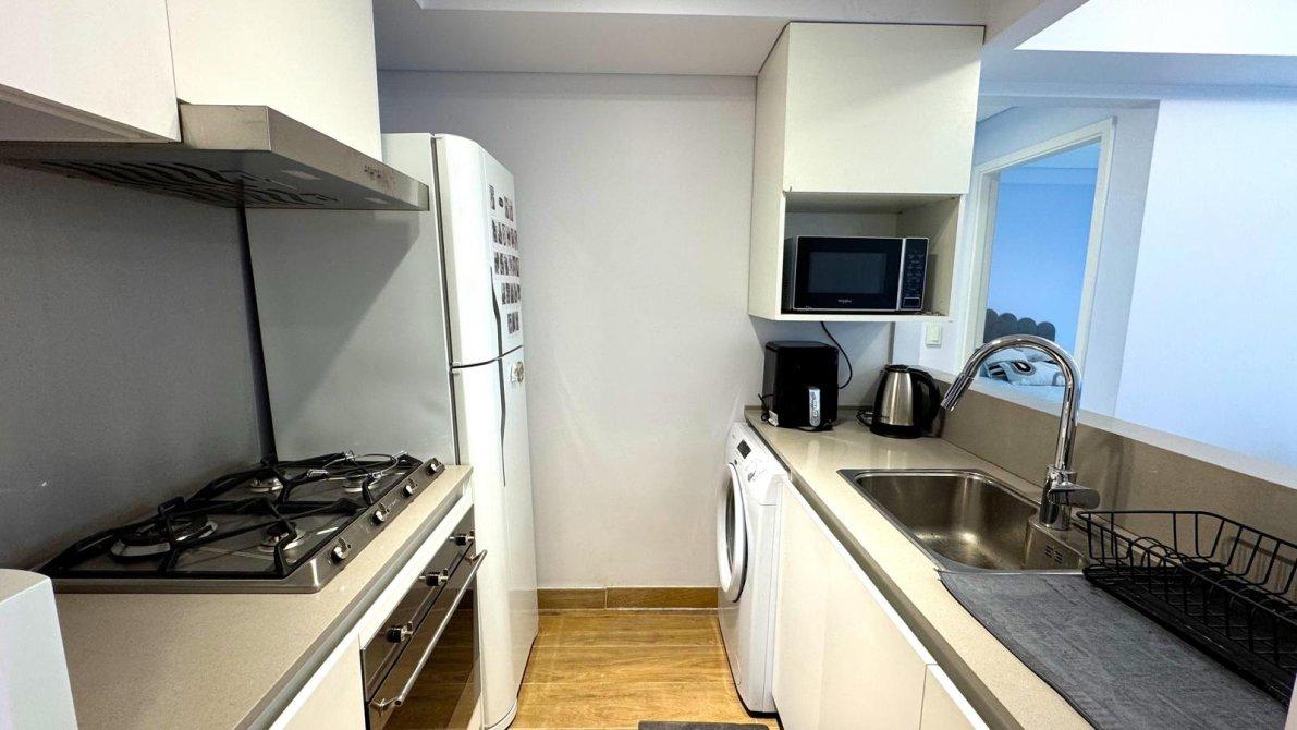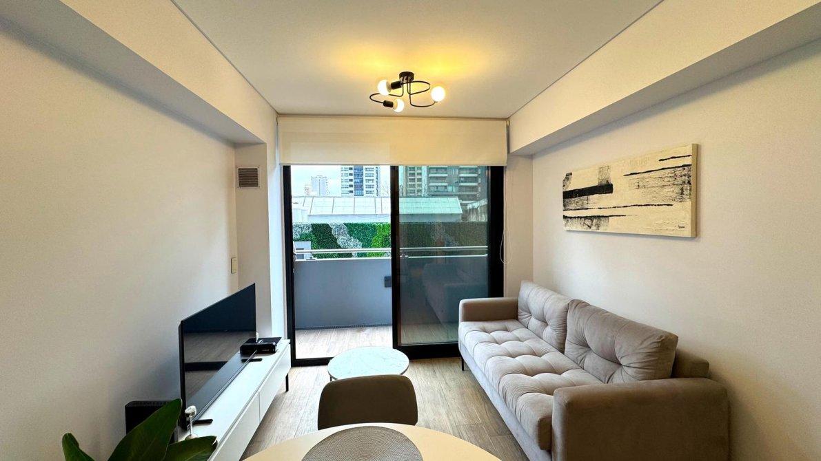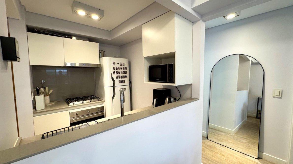 -2 ambientes bien distribuidos: living comedor integrado con cocina con muebles alto y bajo mesada (incluye horno empotrado, anafe y extractor de aire), dormitorio con vestidor y baño completo.