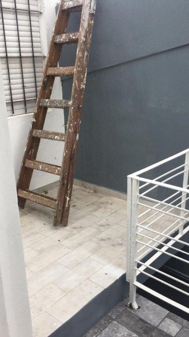 cocina comedor integrada y pequeña terraza con buena ventilación.